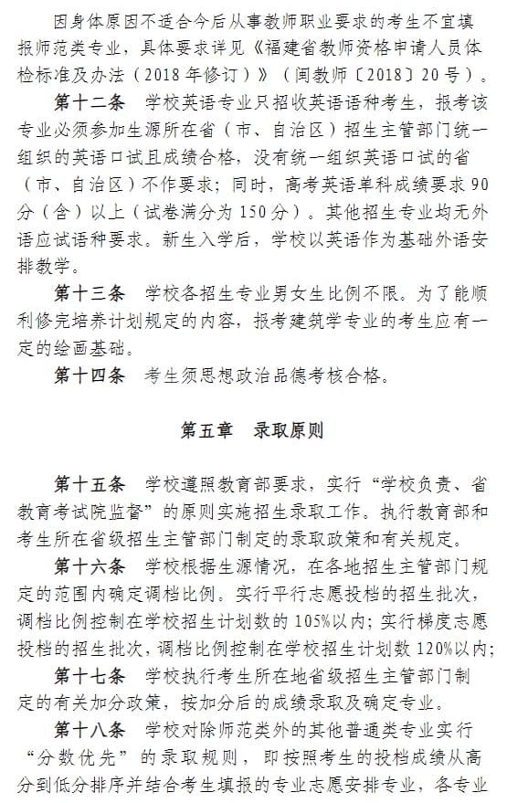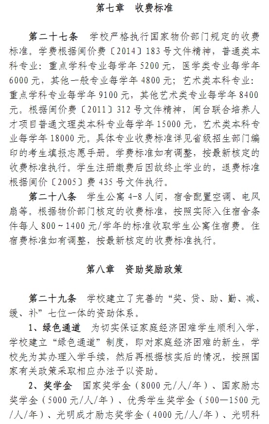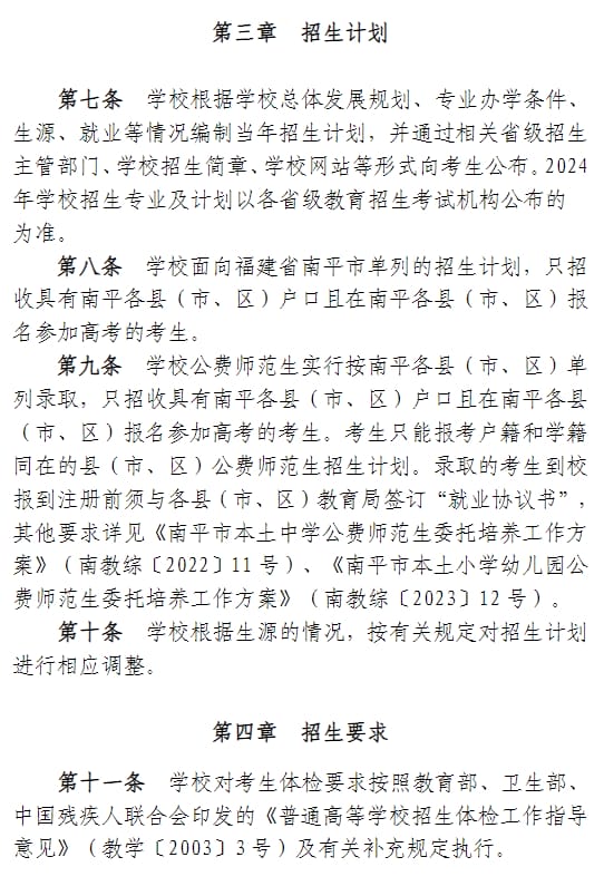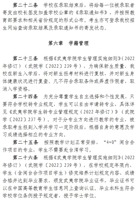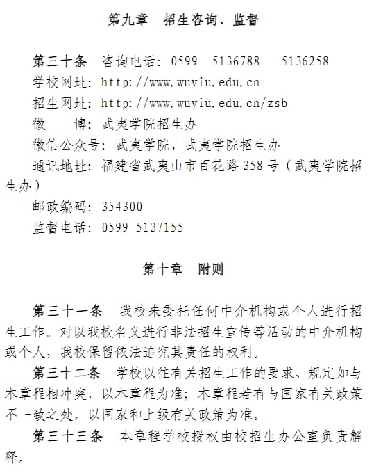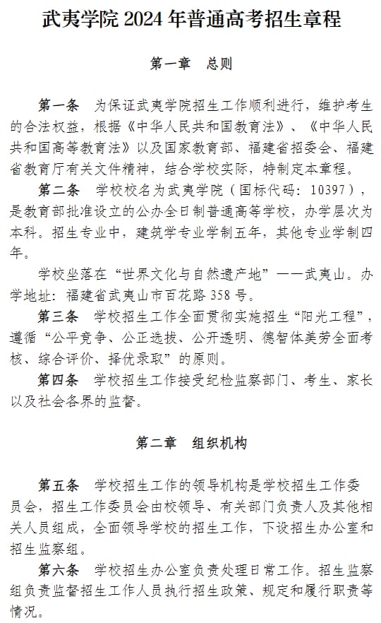 武夷学院2024年普通高考招生章程